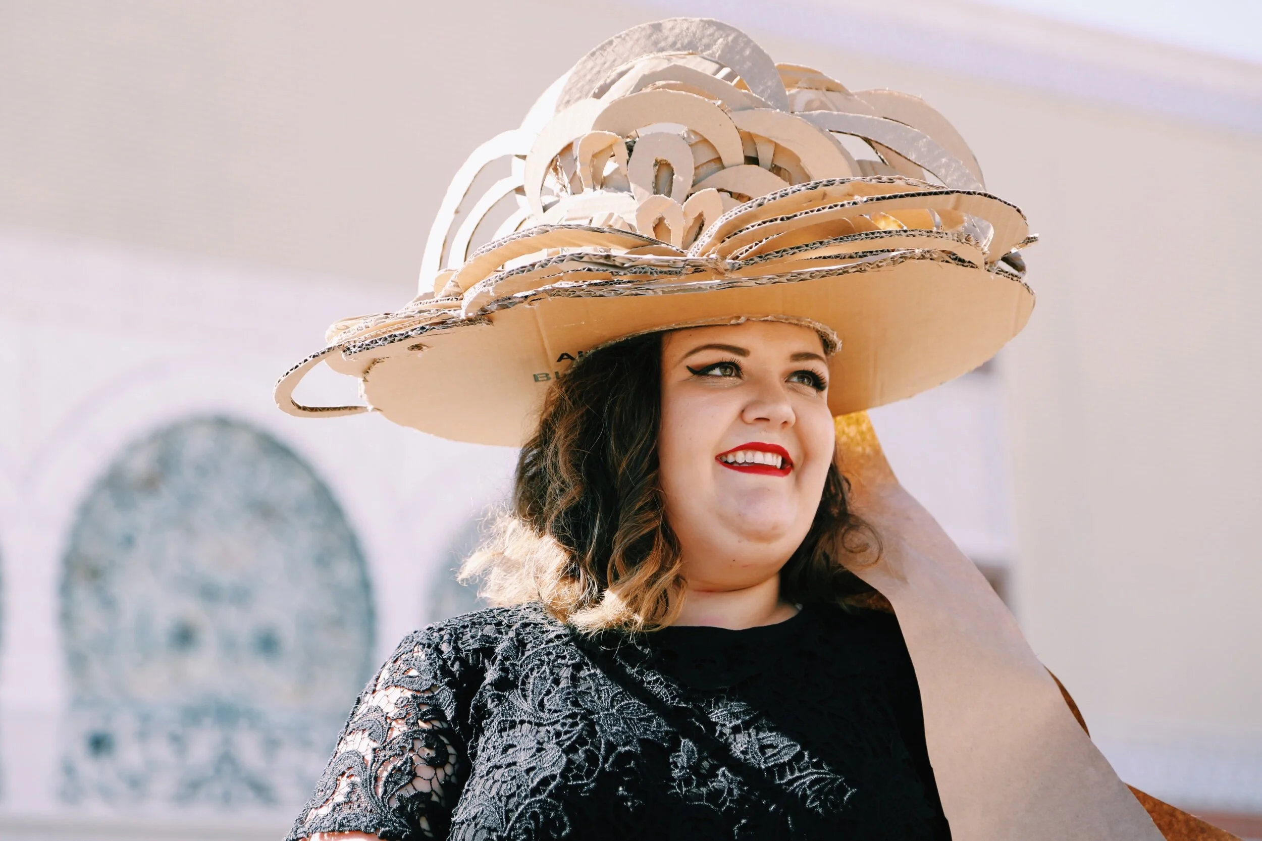 wearable cardboard and butcher paper hat